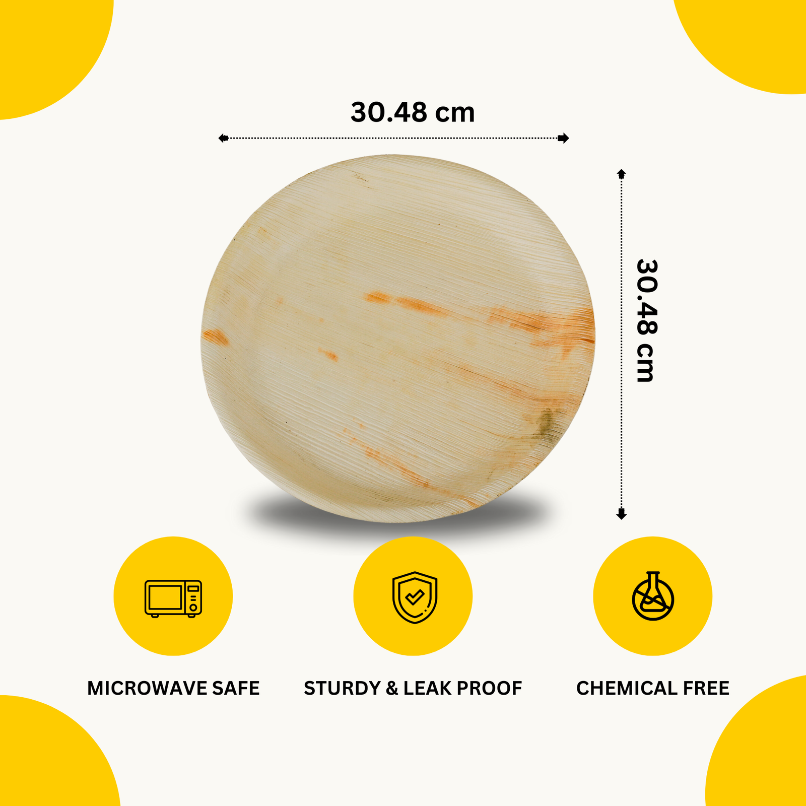 12 Inch Areca Leaf Round Plate (20 Pieces)